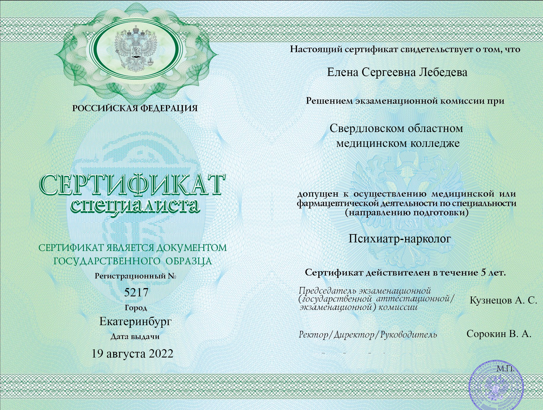 Елена Сергеевна Лебедева врач нарколог клиники доктора Стукаловой в Горняке